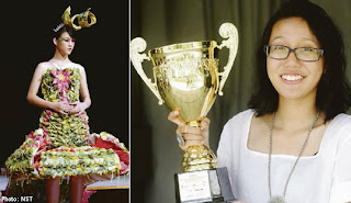 Suraya Mohd Zairin is a science student from SMK Bukit Jelutong, Shah Alam. She says that she chose to make a dress out of tea bags because they were easily available to her. With the help of her friends, she was able to collect the 4,000 bags and then it took her three months to complete the dress. The theme followed by the budding designer was ‘flowers’, because their shapes have always mesmerized her. She received RM4000, which is approximately $1,700, along with a trophy, for her efforts.
